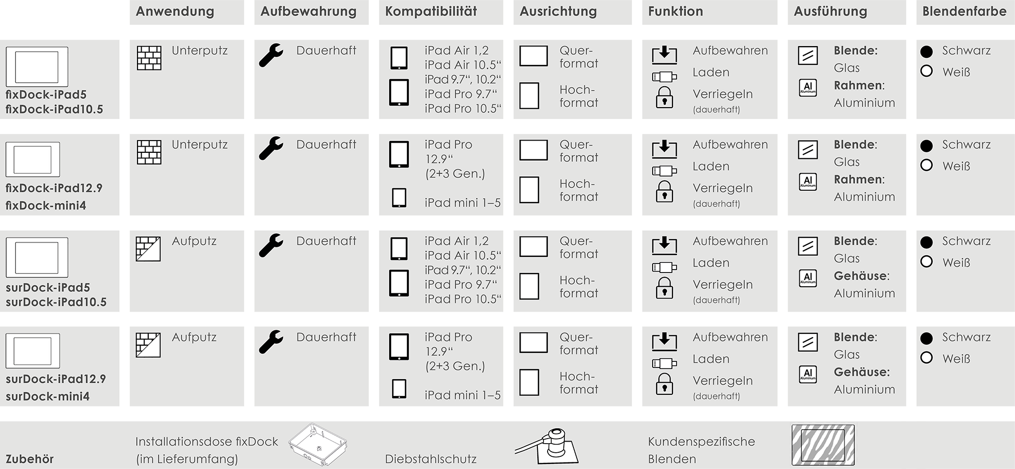 iRoom‘s fixDock und surDock sind stilvolle Fixeinbaulösungen für Ihr iPad™ und macht es somit zum erschwinglichen und fixen Touchpanel!